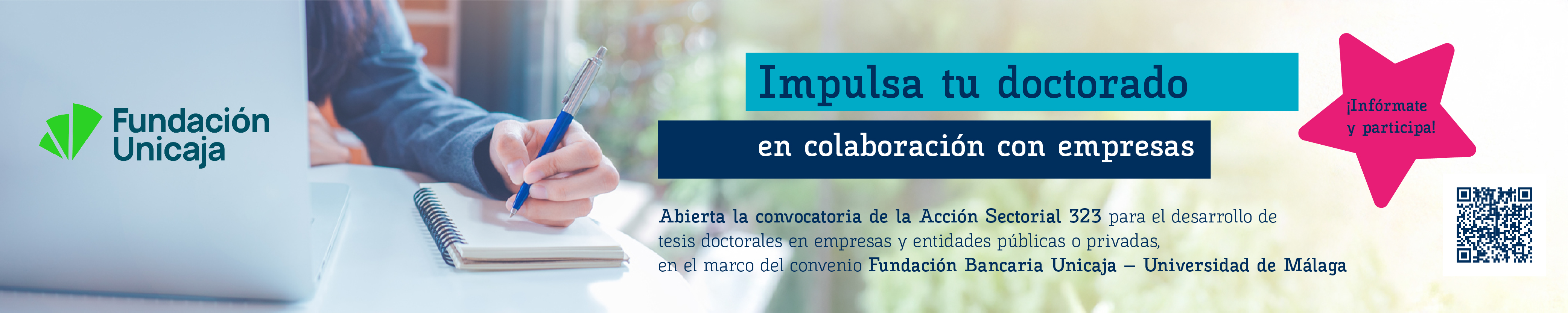 Resolución de 14 de enero de 2026, de la Universidad de Málaga, por la que se convocan ayudas correspondientes a la acción sectorial 323 Tesis doctorales en entidades: empresas, instituciones de la sociedad civil y organizaciones públicas o privadas en el marco del convenio de colaboración entre la Fundación Bancaria Unicaja y la Universidad de Málaga para el desarrollo del Plan de Apoyo al Impulso y Promoción del Doctorado Industrial (Enlace a la convocatoria).