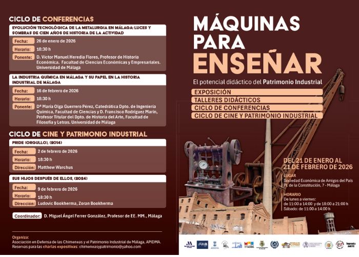 Del 21 de enero al 21 de febrero, en la Sociedad Económica de Amigos del País. Estará presente el Museo Virtual de la EII y el día 6 tendrá lugar un taller didáctico, impartido por Lorenzo Sevilla, con dos sesiones: de 11:15 a 12:15 y de 12:30 a 13:30.
