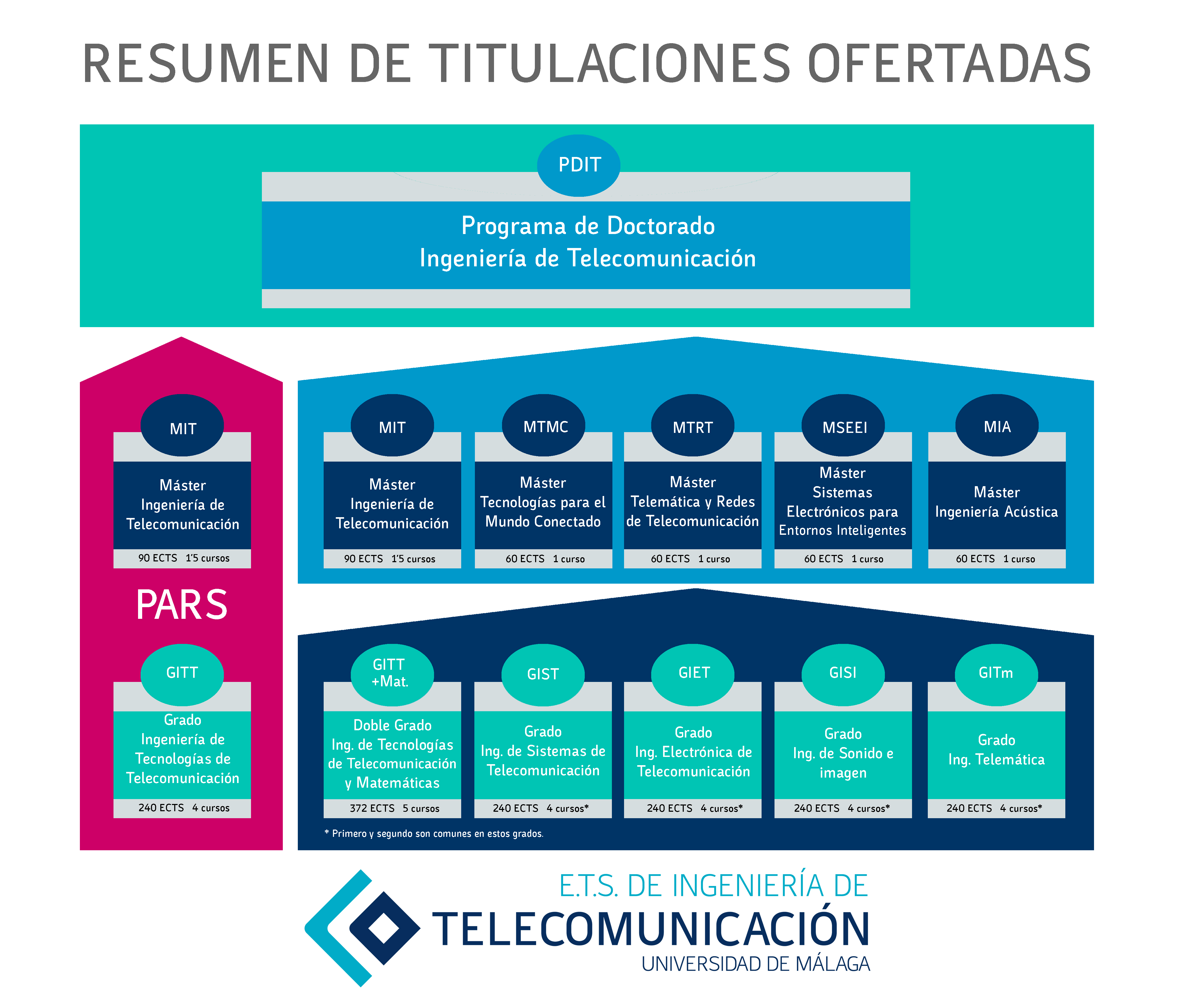 El Programa en Ingeniería de Telecomunicación está formado por un Programa Académico de Recorridos Sucesivos (PARS), que es un itinerario académico que permite realizar de forma sucesiva el Grado en Ingeniería de Tecnologías de Telecomunicación y el Máster en Ingeniería de Telecomunicación, obteniendo tras finalizar la habilitación para ejercer la profesión de Ingeniero/a de Telecomunicación.