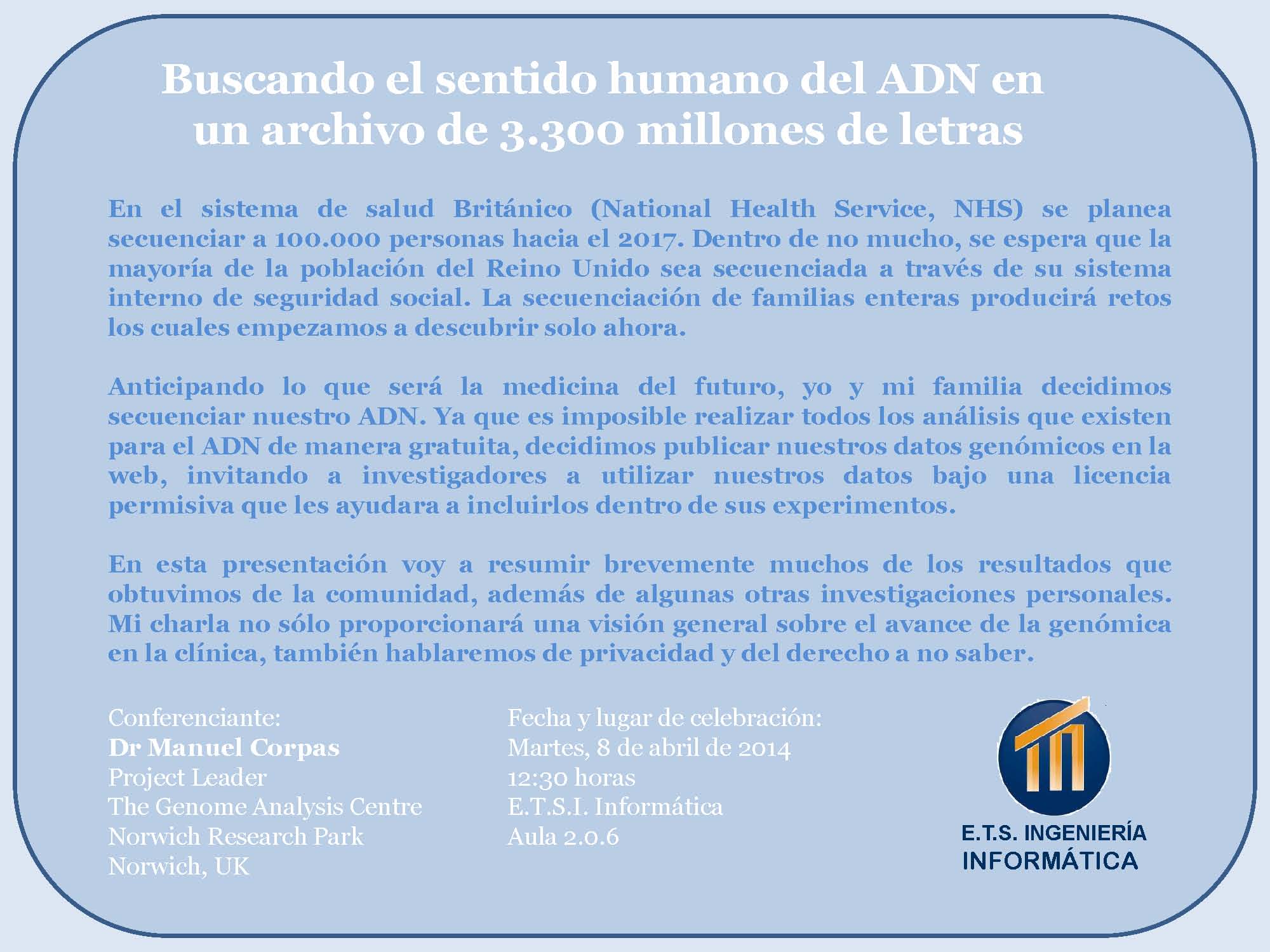 En esta presentación voy a resumir brevemente muchos de los resultados que obtuvimos de la comunidad, además de algunas otras investigaciones personales. Mi charla no sólo proporcionará una visión general sobre el avance de la genómica en la clínica, también hablaremos de privacidad y del derecho a no saber.