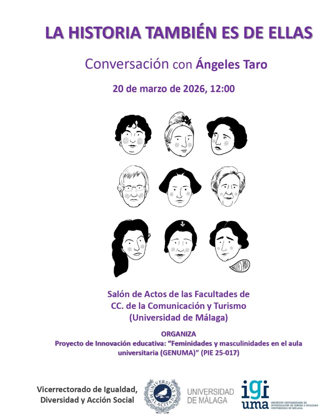 Lugar: Sala de Juntas del Rectorado UMA - Avda. Cervantes, 2, 1ª planta (Parque de Málaga). Ponente: Ana María Barbancho. Presenta y modera: Soledad Santiago