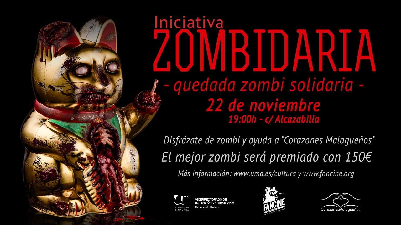 Quedada zombi donde FANCINE donará a una asociación solidaria 1 Kg de comida por cada participante disfrazado. Se otorgará al mejor disfraz un premio en metálico.
