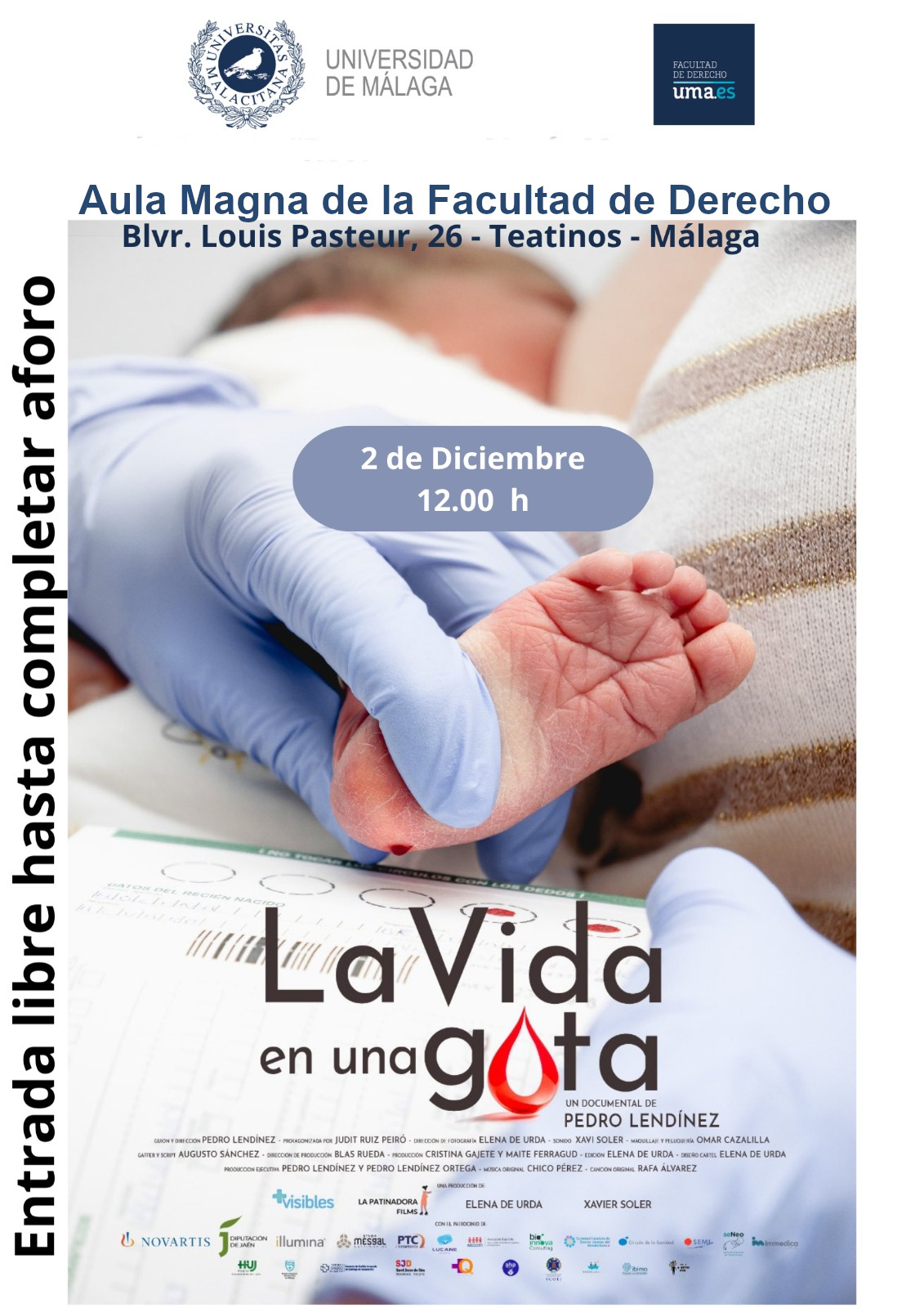 La proyección tendrá lugar en el Aula Magna "Rector José María Martín Delgado" de Decanato de la Facultad de Derecho el próximo martes 2 de diciembre a las 12:00 horas. Esta sesión contará con la presencia del Francisco Collado, Profesor de Ciencia Política de la UMA; Pedro Lendínez Presidente de la Asociación, Más Visibles; y Davinia Burgos, distribuidora audiovisual y doctoranda en Comunicación por la UMA.