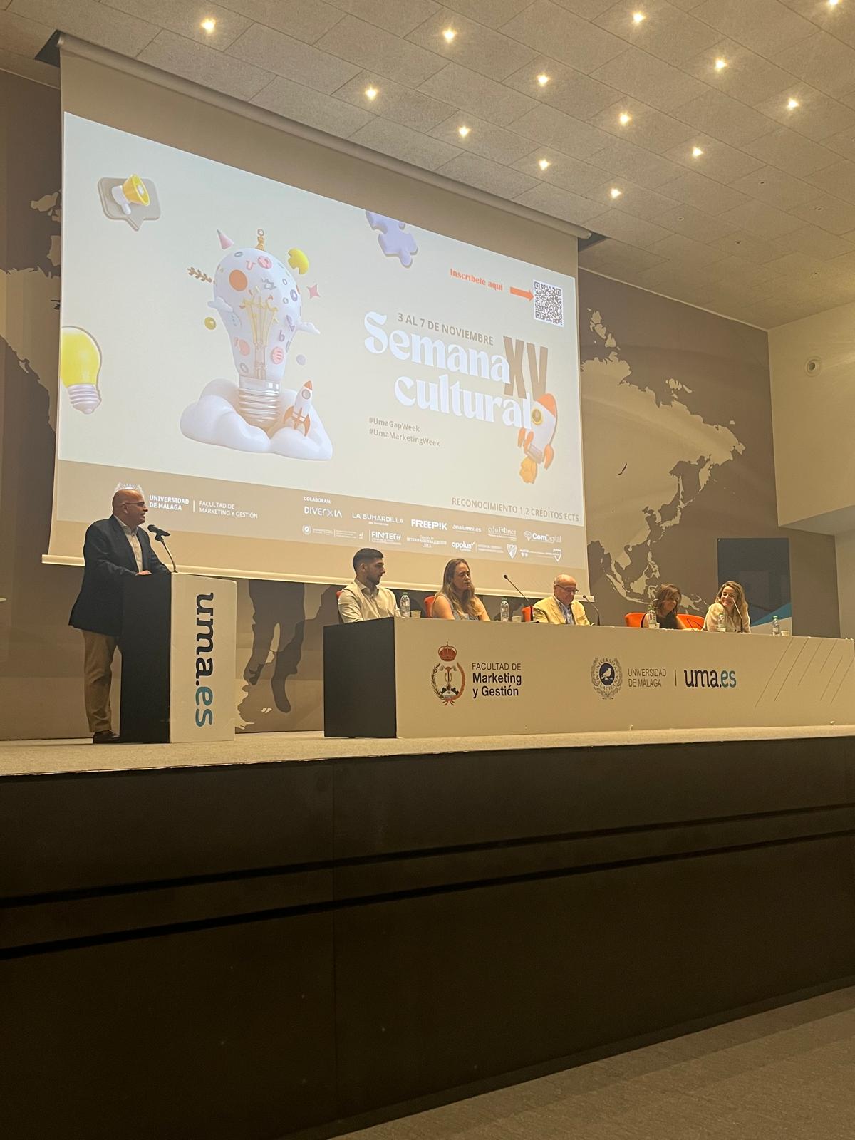La Facultad de Marketing y Gestión de la Universidad de Málaga celebró del 3 al 7 de noviembre la XV Semana Cultural, reuniendo a un gran número de profesionales del sector, docentes, antiguos alumnos y estudiantes. Fue una semana de aprendizaje y participación a través de conferencias, mesas redondas y charlas dentro de la #UMAMarketingWeek y la #UMAGAPWeek.