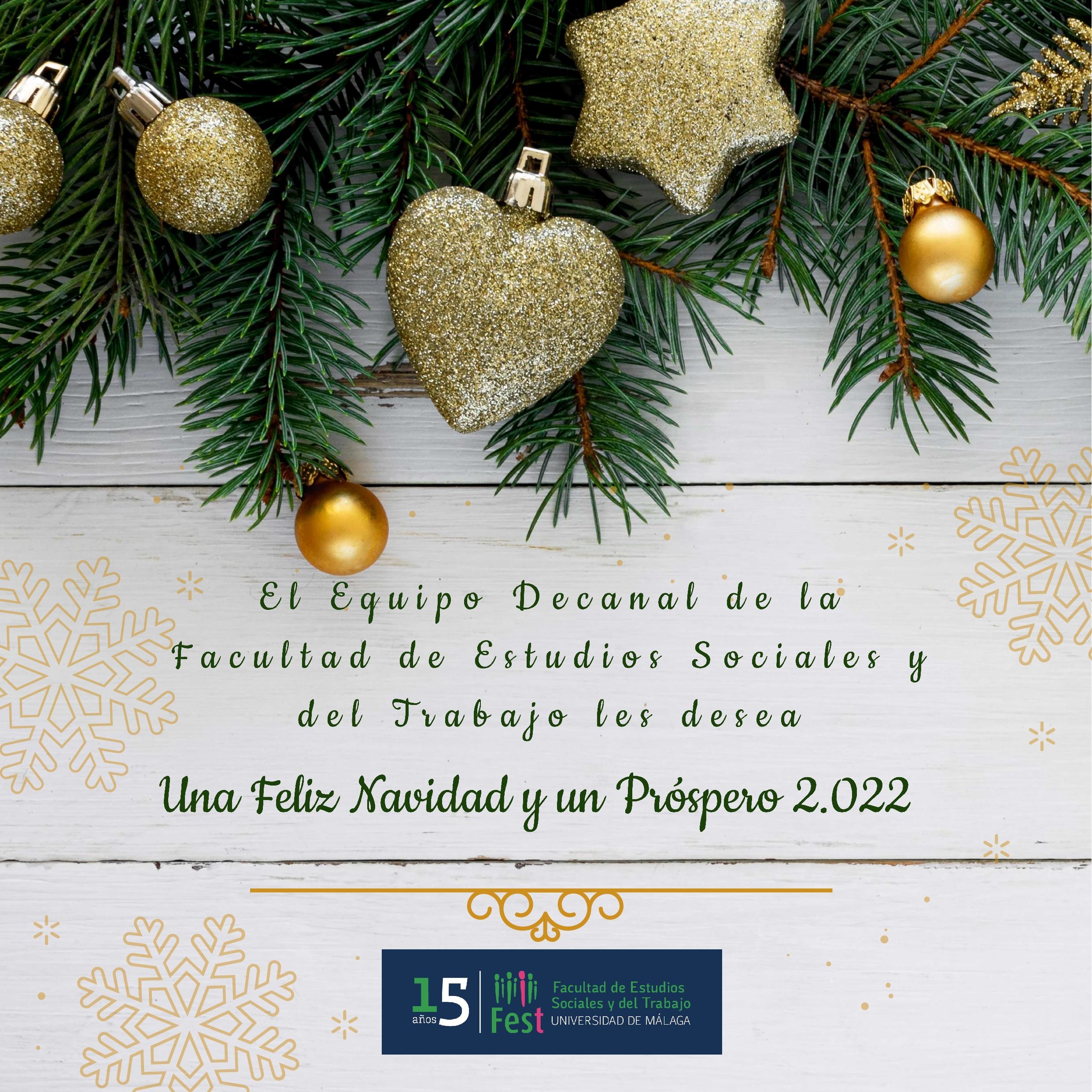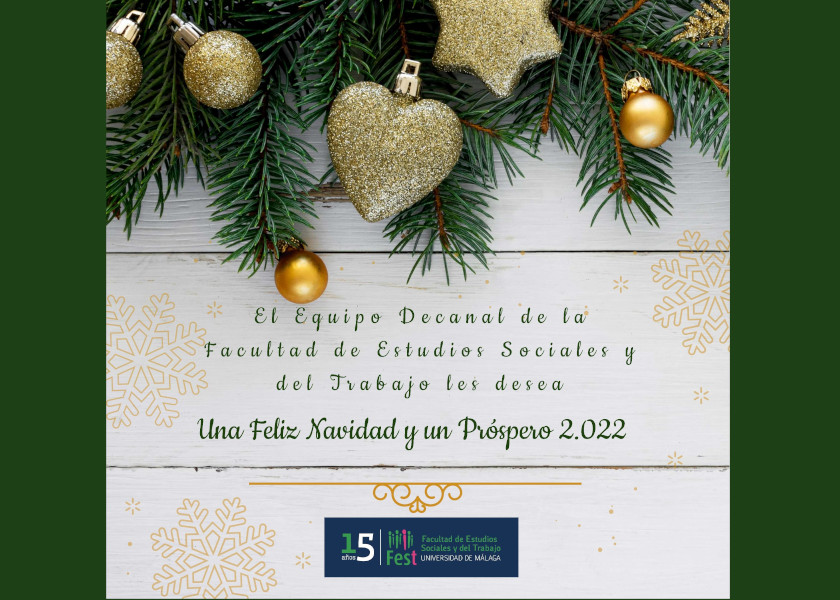 Los miembros del equipo Decanal de la Facultad de Estudios Sociales y del Trabajo os queremos desear unas felices fiestas y un próspero año nuevo.