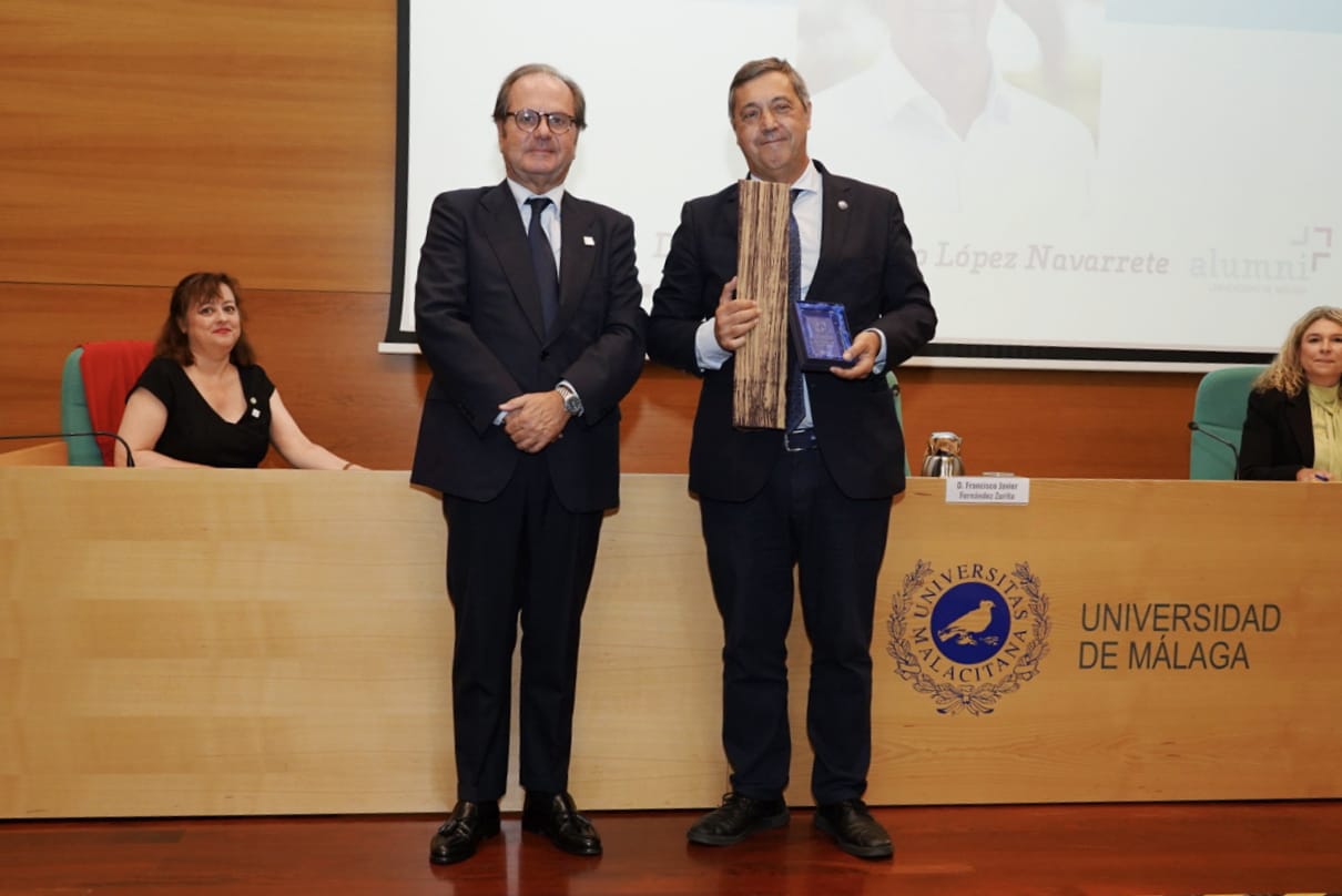 El rector recibe el reconocimiento de manos del presidente de Alumni UMA