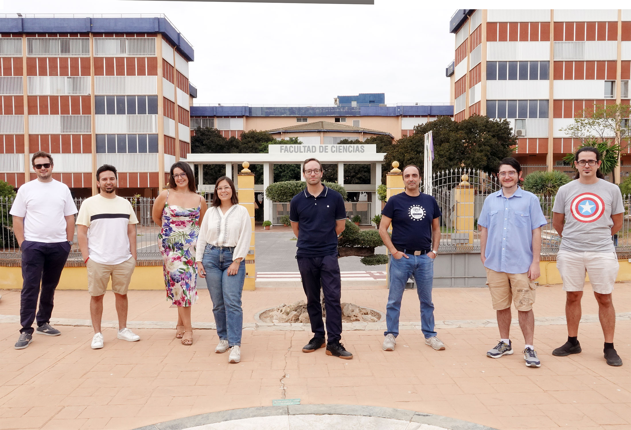 Parte del equipo científico de SIBIUMA en el jardín Botánico de la Universidad, frente a la Facultad de Ciencias