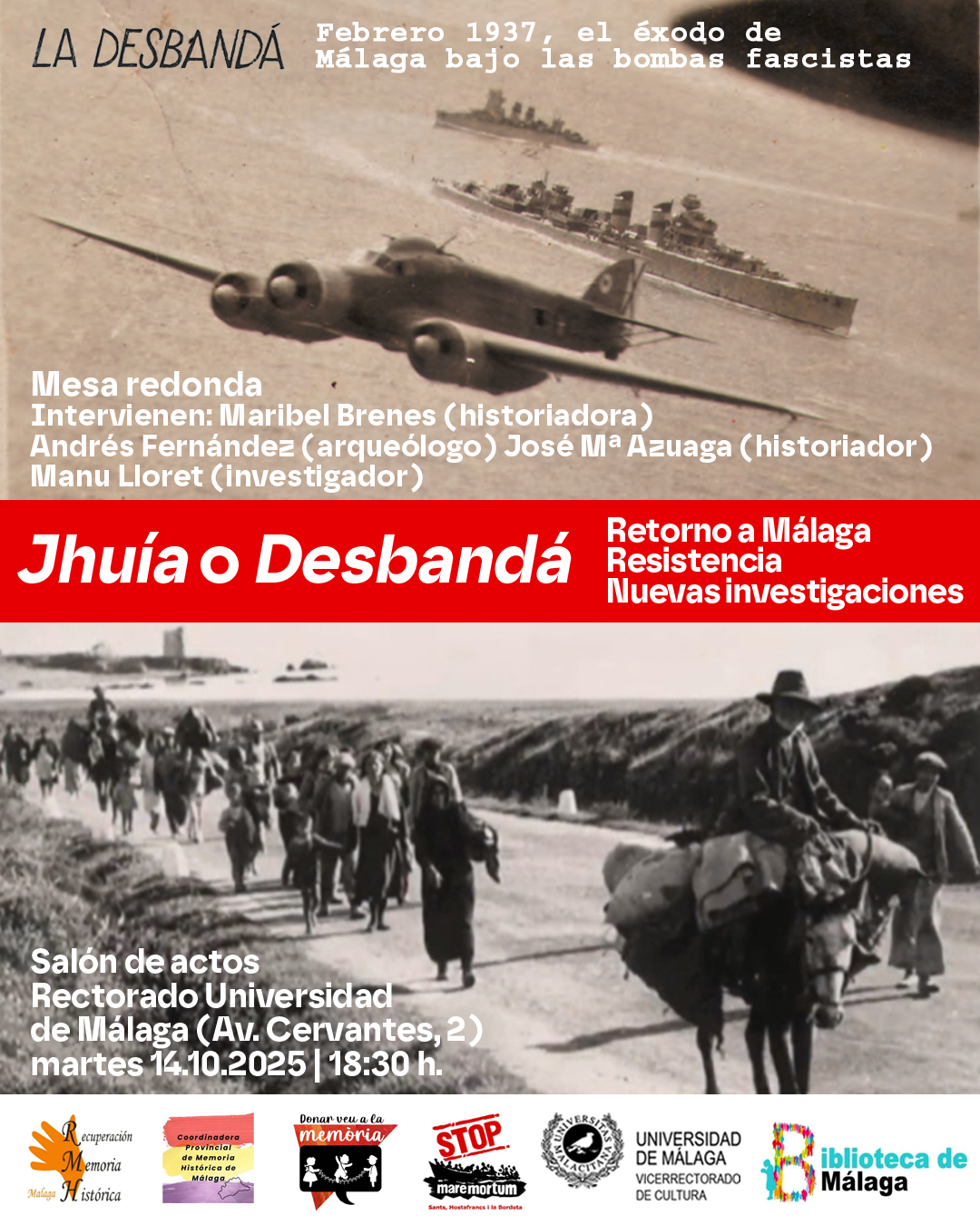 Esta mesa redonda abordará en particular cuestiones sobre el retorno a Málaga tras dicho éxodo, la resistencia posterior y las recientes nuevas investigaciones sobre el crimen de guerra apodado más tarde como Desbandá.